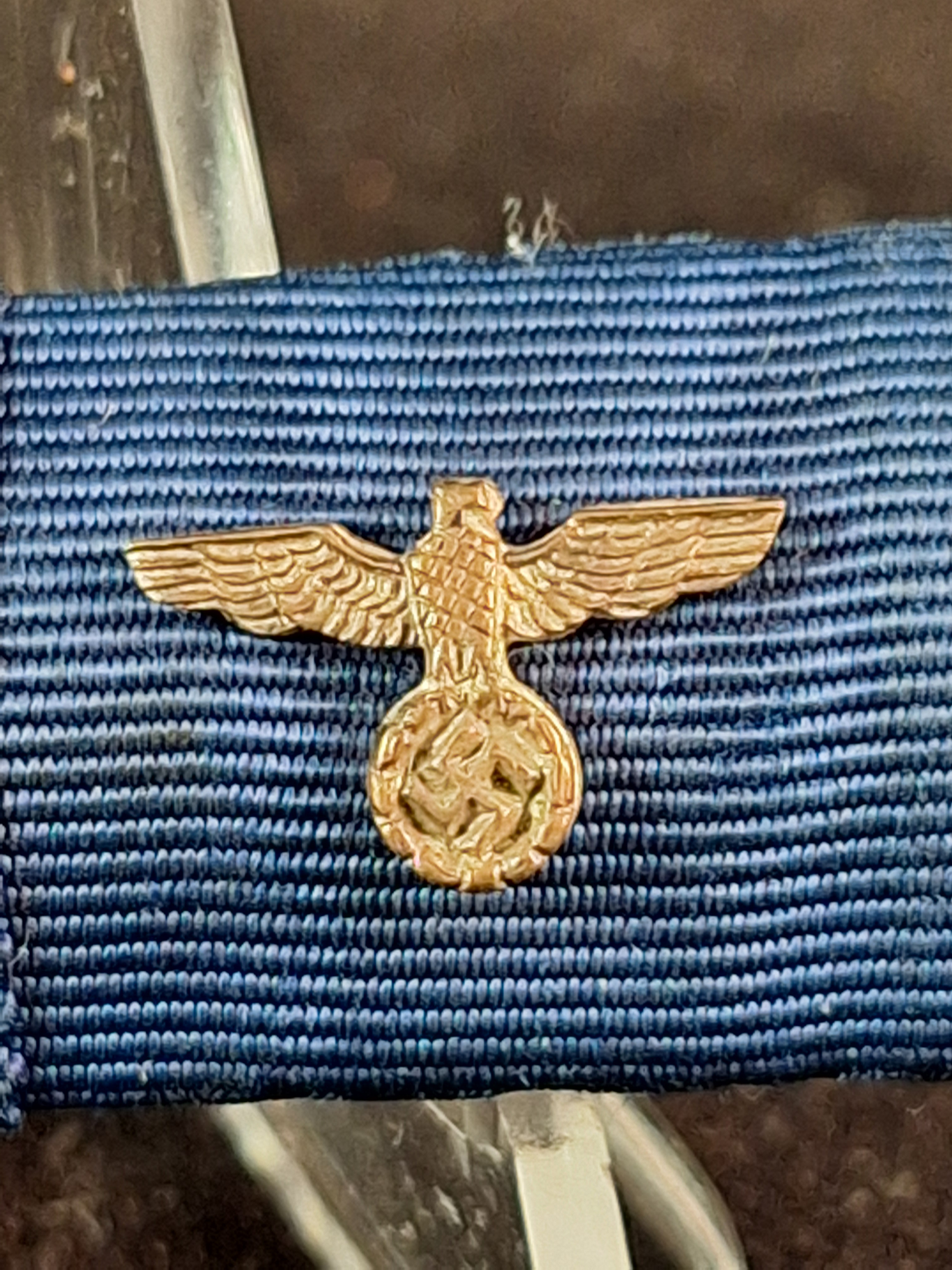 A Heer ribbon bar with two ribbons: 1) 4 years service, 2) 8 years service. Both ribbons with the National eagle on it. Reverse with maker mark "Friedrich Sedlatzek. Berlin SW 68. Friedrich Str. 205".