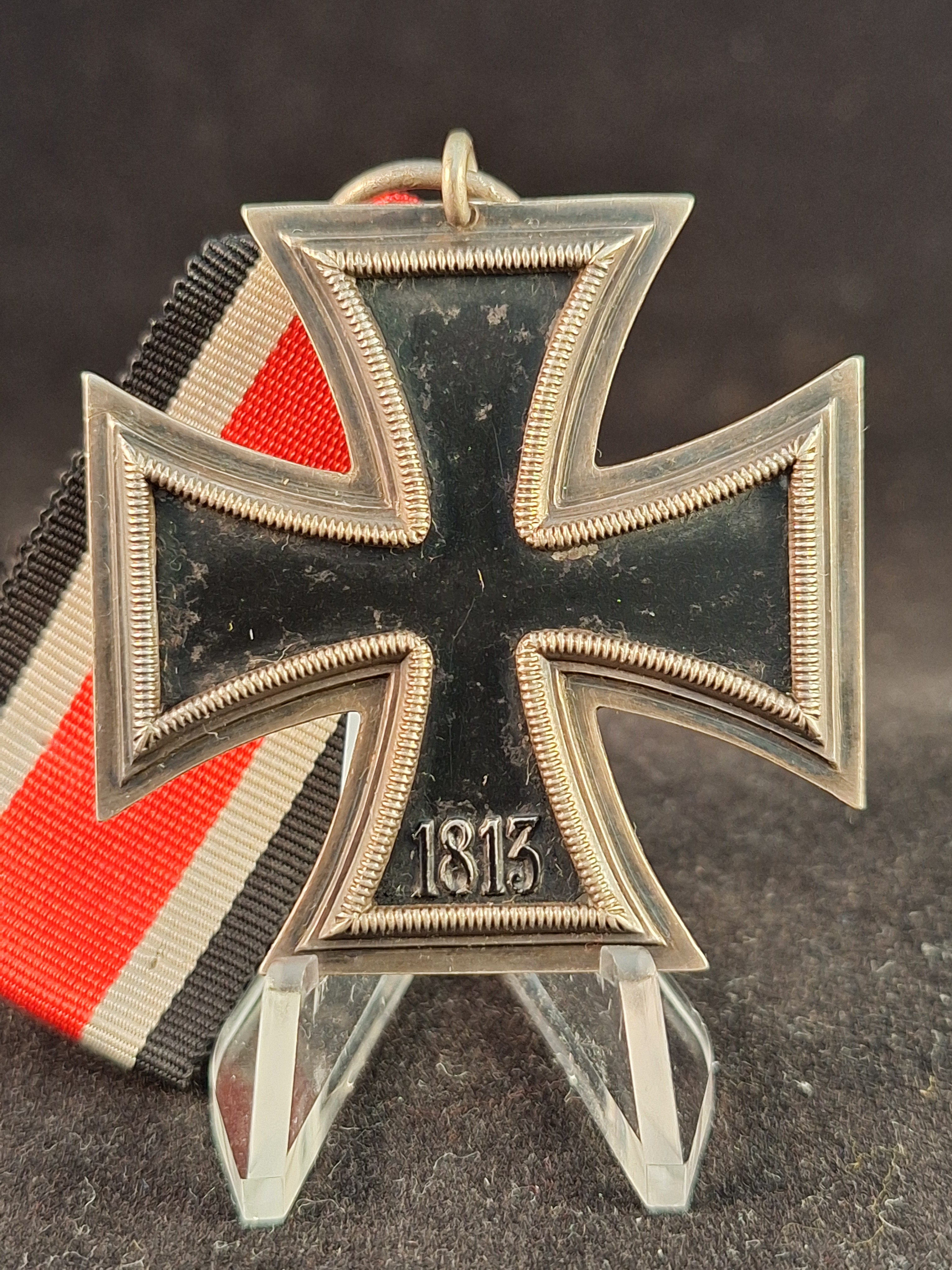 Iron Cross Second Class. Three pieces made. Iron core. Maker marked "98" (Rudolf Souval). Good condition and nice patina. Original long ribbon. Weight: 17'30grs. Dimension: 44mm x 44mm. *Not "make an offer" allowed.