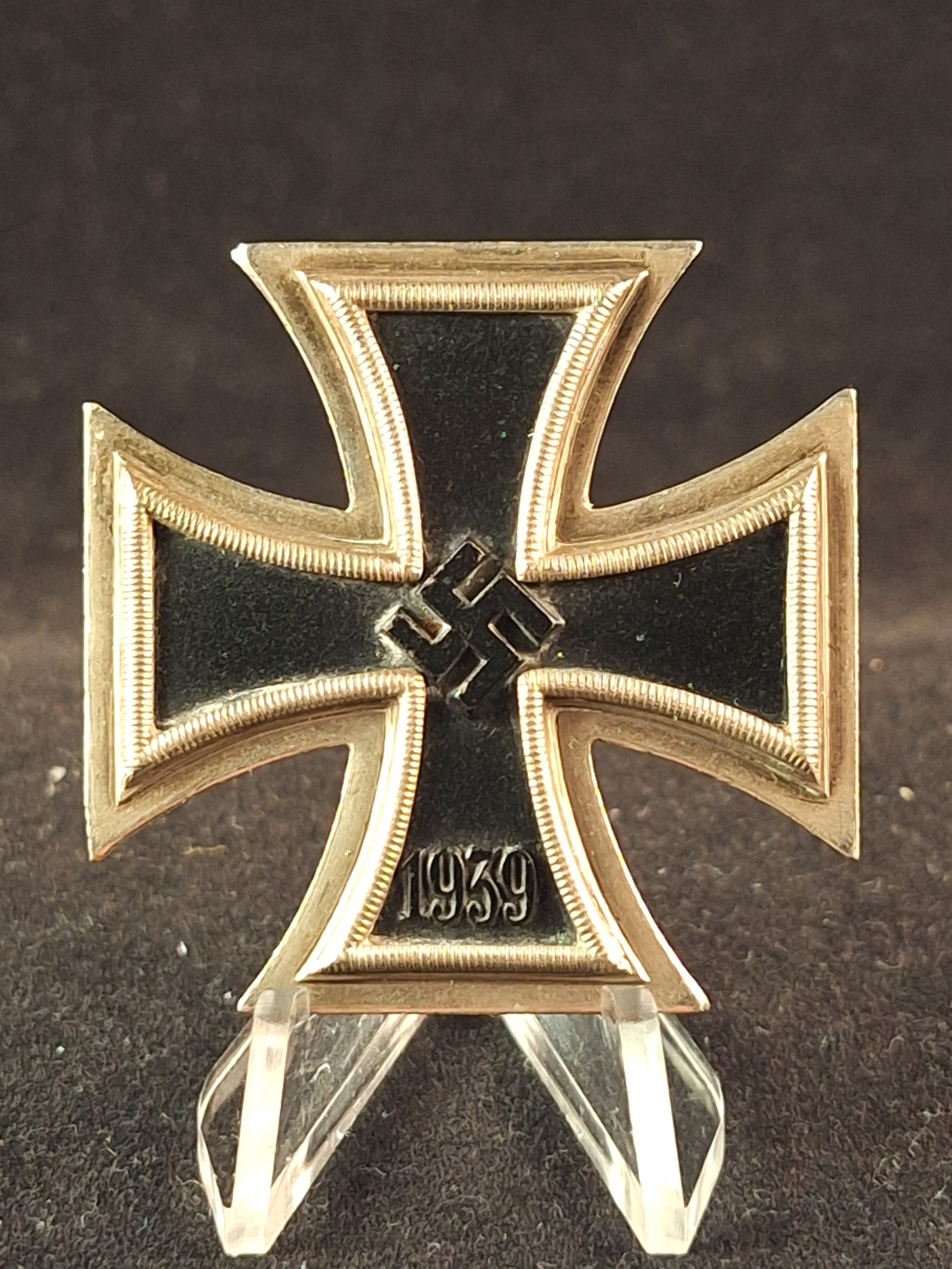 Cruz de Hierro de Primera Clase. Fabricada en tres piezas. Magnética. Sin marcar, aunque atribuida al fabricante C.E. Juncker. Muy buen estado general. Peso: 20'41grs. Medidas: 44'5mm x 44'5mm.